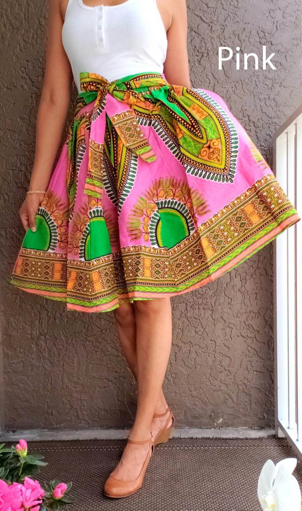 New African Ankara Skirt Dashiki Print High Waist Pleated Beach Boho Maxi Dress. African/Ankara Wax Fabric Traditional Abstract Print Tribal Women's Long Wrap Maxi Skirt