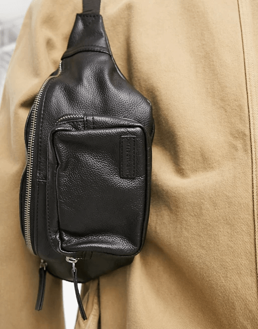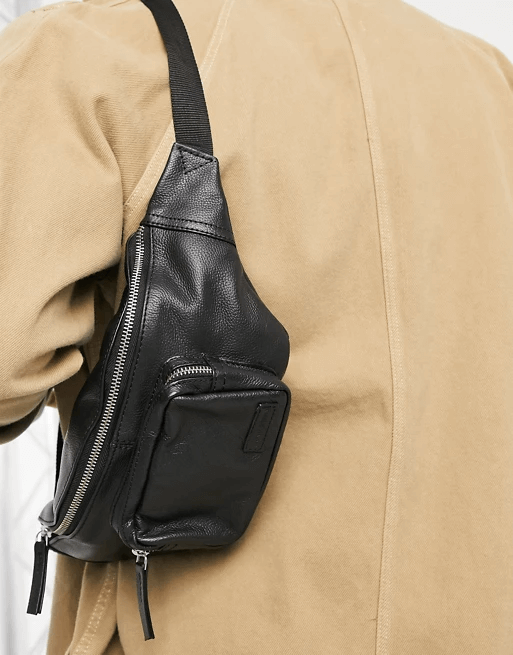 0 review for ASOS DESIGN leather crossbody fanny pack in black with front pouch